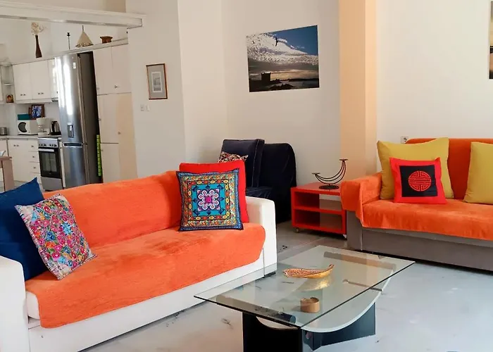 A Central Panoramic View Penthouse apartman közvetlen hozzáférést biztosít az Archaio Theatro területéhez, továbbá kilátást nyújt a tengerre. A Centre of Information and Interpretation of Eastern Mani területétől az ingatlan egy 5 perces autóútra fekszik, a Koumaros pedig 5 perc autóútra van.